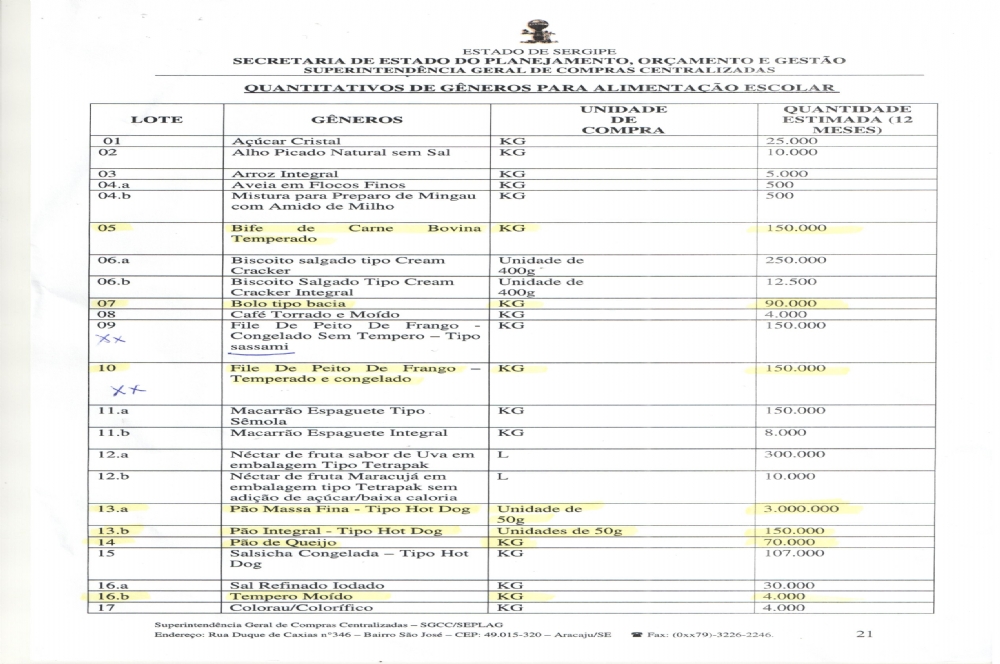 escolar para abastecer a rede estadual de ensino. Até a manhã desta