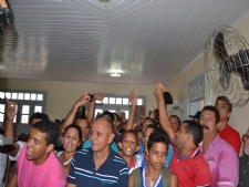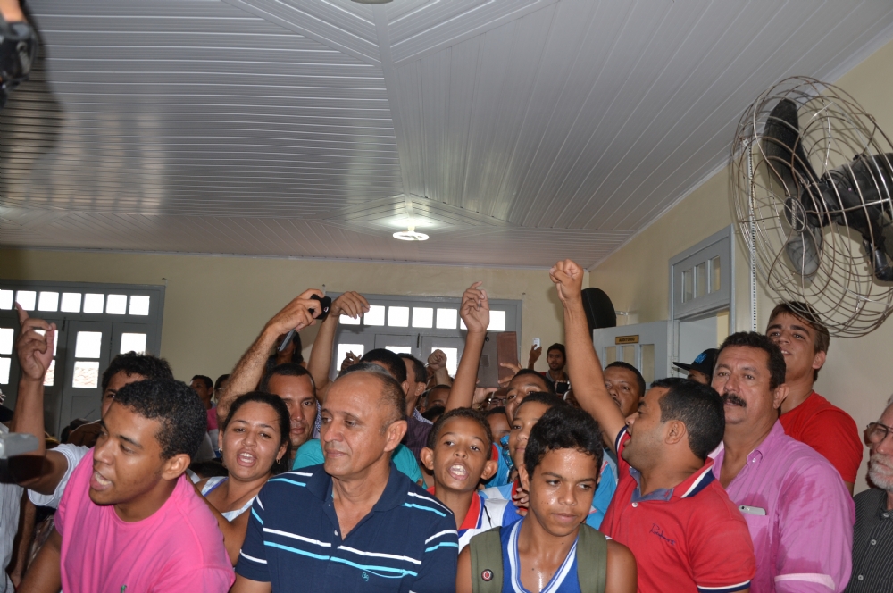 Um grupo de moradores acompanhou a solenidade de posse no pequeno espaço do prédio onde funciona a Câmara de Vereadores e a todo momento se manifestava, com vaias dirigidas aos vereadores José Evaldo Santos (PSB) e Gibson Rodrigues (PSC), líder do prefeito, os únicos que se recusaram a assinar o requerimento pela instalação da Comissão Parlamentar de Inquérito (CPI) para investigar as denúncias relacionadas à suposta fraude no processo de licitação para aquisição da merenda escolar.