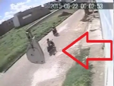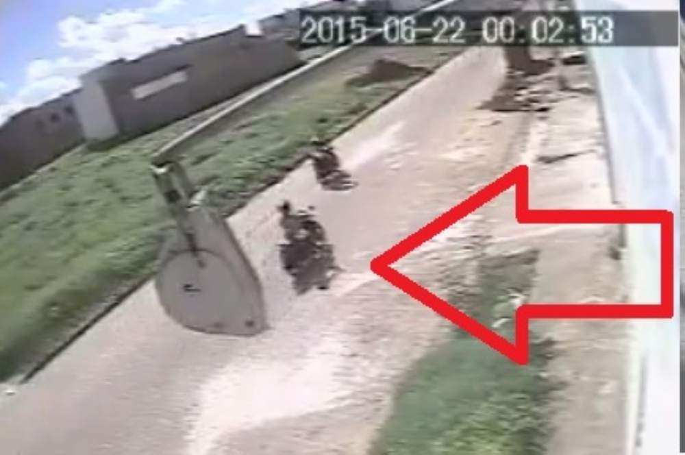 A seta mostra a mulher e a frente os dois suspeitos em uma moto (FotoS: Reprodução vídeo divulgado pela polícia)