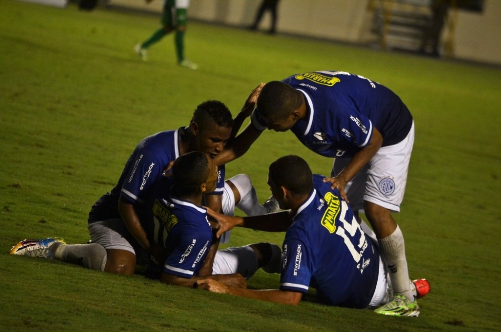 | Jogadores abraçam Robinho no quarto gol: passeio azulino (fotos: Igor Matheus/ Portal Infonet) |
