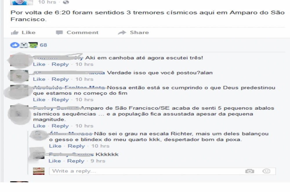 Internautas postaram nas redes sociais a sensação que sentiram com o tremor (Foto: Facebook)
